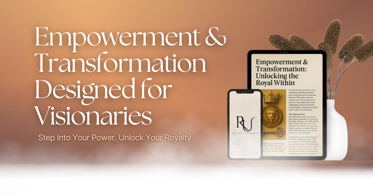 At Royalty Unlocked, we believe that everyone has an inner majesty waiting to be discovered. Our mission is to empower you to become the best version of yourself—unlocking the confidence, grace, and strength that define true royalty. Through our carefully crafted tools, resources, and guidance, we inspire growth from within, helping you to live with purpose, passion, and authenticity. We’re here to help you break through limitations and rise to new heights, so you can show up in the world with the impact and influence you were meant to have. Join us on this journey of self-discovery and let your inner royalty shine.